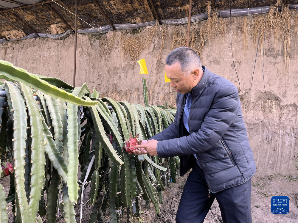 2月24日,郭存海在大棚查看火龍果生長情況。新華社記者 解統(tǒng)強 攝