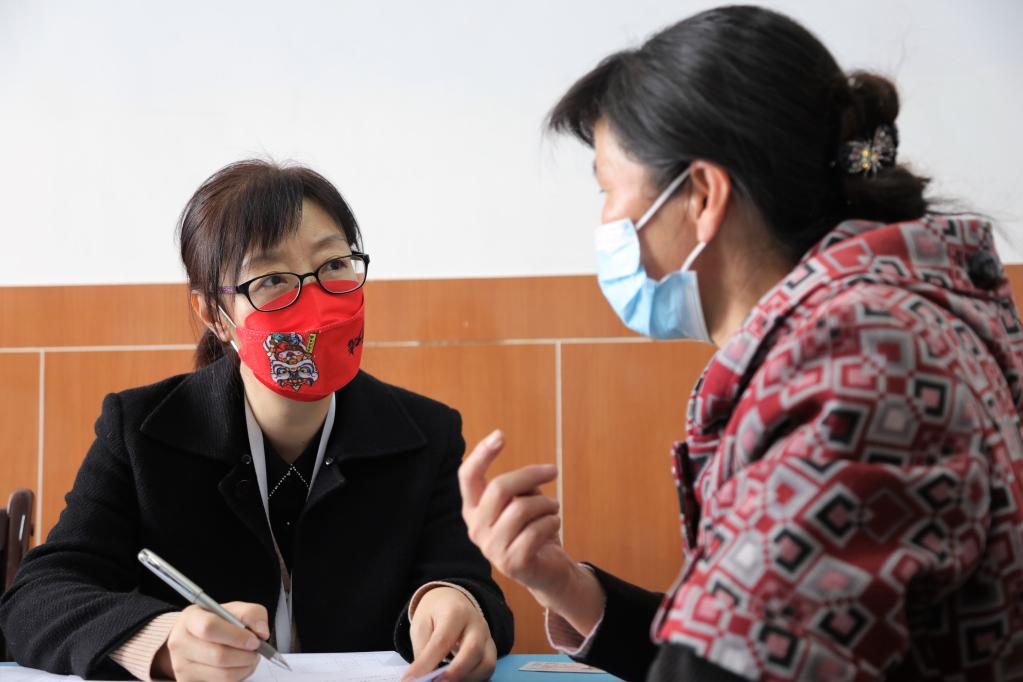 3月9日,評估機構工作人員袁國芬(左)在社區(qū)“石榴籽家園”開展老年人能力綜合評估工作。新華社記者 趙玉和 攝