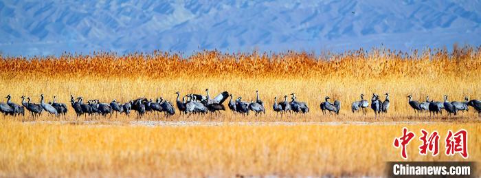 幾百只灰鶴齊聚柴達(dá)木盆地可魯克湖