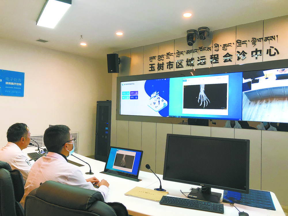 玉樹(shù)市八一醫(yī)院內(nèi)的玉樹(shù)市區(qū)域遠(yuǎn)程會(huì)診中心。張子涵 攝