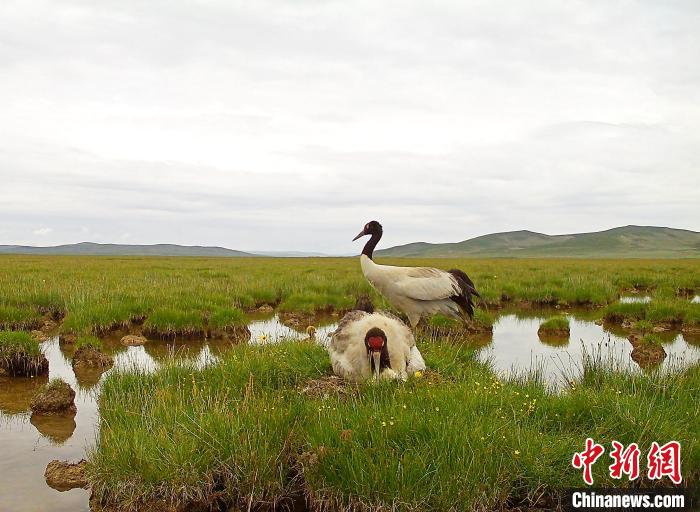 圖為黃河源頭瑪多境內(nèi)濕地的黑鶴?,敹嗫h委宣傳部 供圖