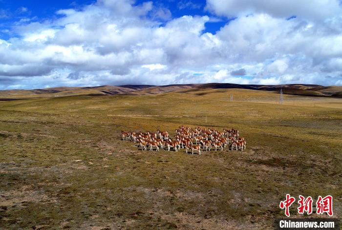 圖為三江源國家公園黃河源園區(qū)內(nèi)的藏野驢群?,敹嗫h委宣傳部 供圖