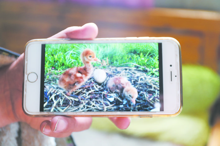 “我們與這對黑頸鶴相識(shí)五年之久了,每年三月,它們都會(huì)從云南遷回這里?;貋肀囟ń?jīng)過監(jiān)測站門前,我們就像親人一樣?!比缈颇贸鍪謾C(jī)翻看在巡護(hù)期間拍到的黑頸鶴影像,講起了他們和黑頸鶴夫婦的故事。