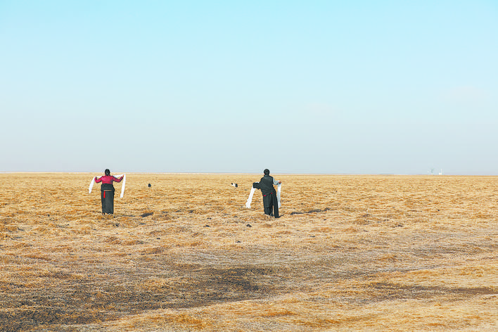 年復(fù)一年,如科每天帶上工作證、望遠(yuǎn)鏡、茶水和干饃饃,從他居住的觀測站出發(fā),騎著摩托車巡護(hù)濕地;他的妻子沿著湖泊撿拾垃圾,守護(hù)著黑頸鶴的棲居環(huán)境,守護(hù)著野生動(dòng)物的美好家園。