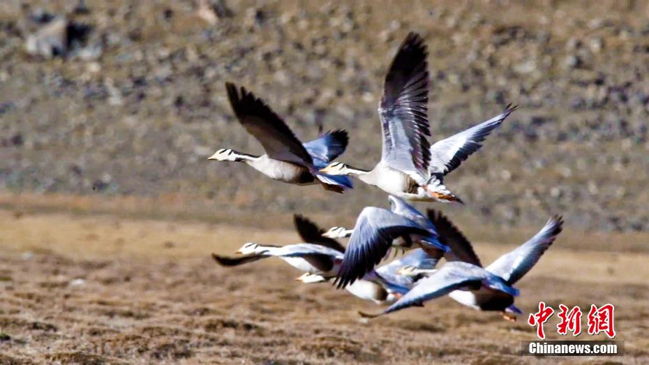 圖為飛翔的斑頭雁。張世偉 攝