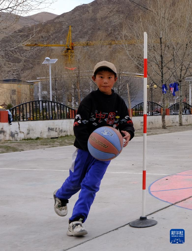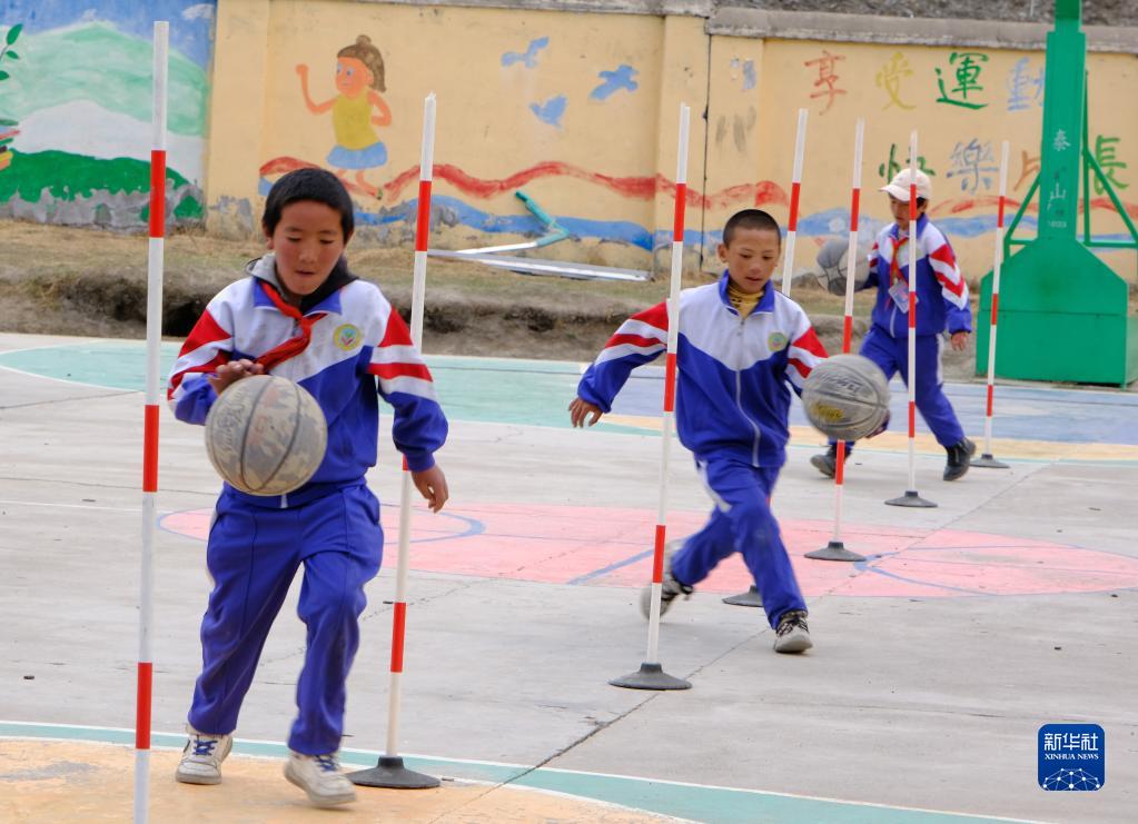 4月18日,稱多縣文樂中心寄校籃球社團的學(xué)生在活動。新華社記者 童昊 攝