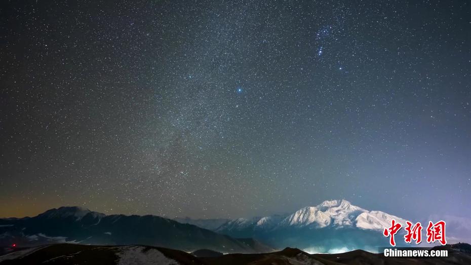 近日,攝影愛好者在位于祁連山腹地的青海省海北藏族自治州祁連縣,用延時(shí)攝像的方式記錄下鮮有人知的春日祁連山壯麗星河和絕美晨曦。祁連山海拔在4000米至6000米之間,海拔4000米以上的地方,稱為雪線,一般而言,冰天雪地,萬物絕跡。雪線之上,夜晚布滿繁星的銀河是祁連山最美奇觀之一。清晨,銀白的曙光漸顯緋紅,朝霞映在當(dāng)?shù)孛癖娦闹小吧裆健迸P纳缴希吧裆健蓖鹑缟倌昕±蕡?jiān)毅。馬志原 攝