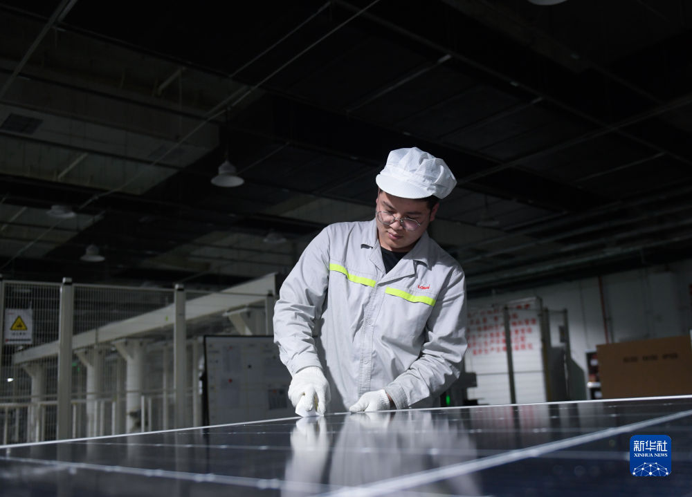 6月7日,青海隆基樂葉光伏科技有限公司工人在廠區(qū)加工光伏組件。新華社記者 周盛盛 攝