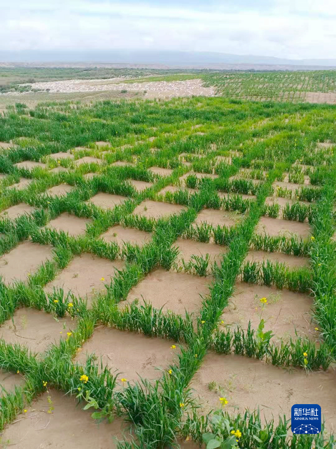 “2018年以來,我們積極開展治沙新材料試驗研究,利用小麥、青稞、燕麥、披堿草等生物材料開展活沙障設(shè)置試驗。現(xiàn)在四種生物沙障當年成活率可達到95%,起到良好的固沙作用?!壁w雪彬說。