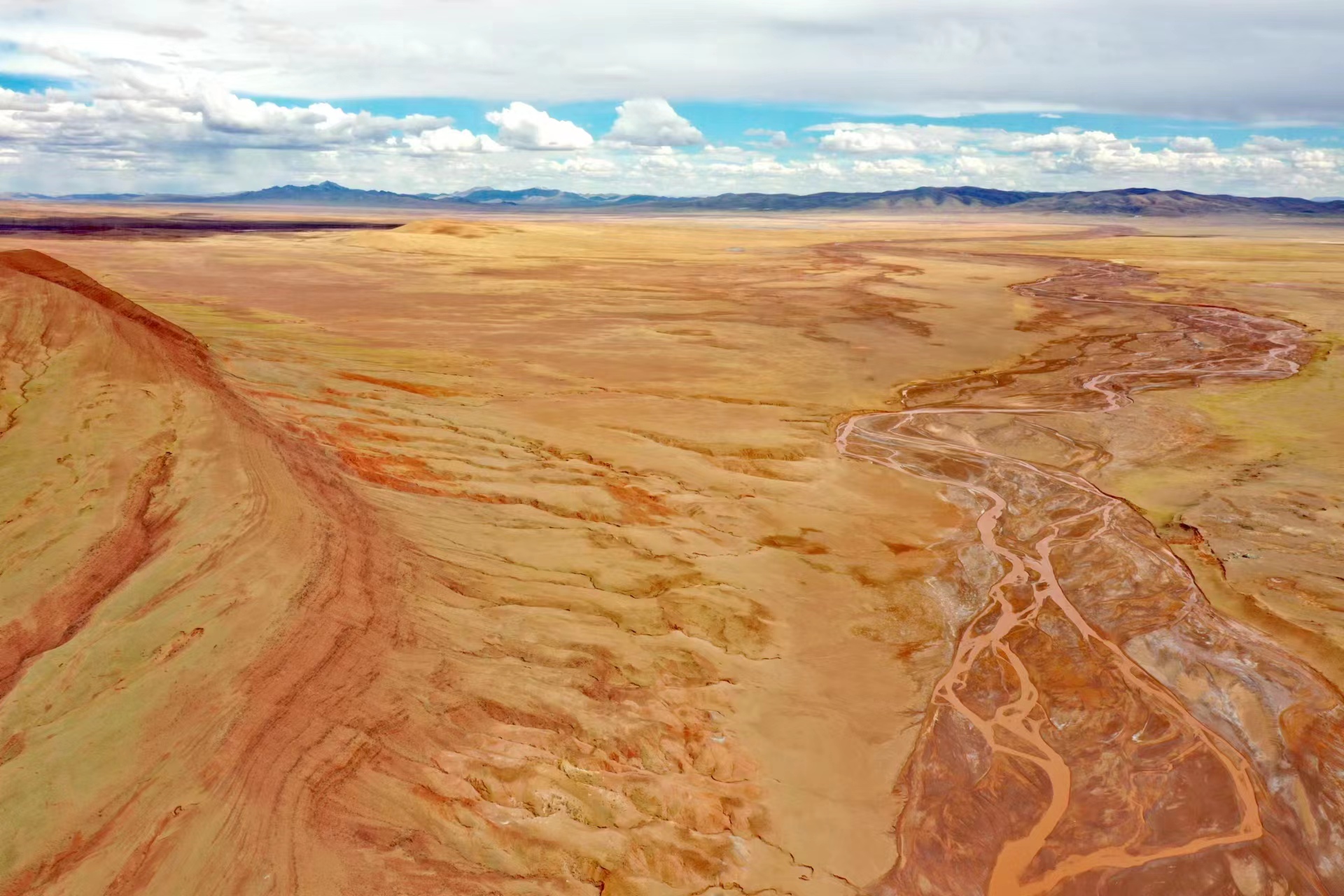 近日,中國(guó)地質(zhì)大學(xué)(武漢)長(zhǎng)江科考先遣隊(duì)員張永一行進(jìn)行綜合科學(xué)考察時(shí),在青藏公路日阿尺曲一帶發(fā)現(xiàn)一條紅色山脈,是青藏高原109國(guó)道沿線(xiàn)一處壯觀的地質(zhì)遺跡。該山脈由晚白堊紀(jì)鈣質(zhì)膠結(jié)的粉、細(xì)砂巖與古近紀(jì)紫紅色、磚紅色復(fù)成份礫巖所組成,呈近東西走向,兩坡不對(duì)稱(chēng),南陡北緩,地層剖面出露清楚。