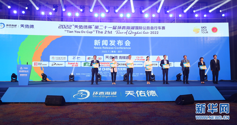 2022第二十一屆環(huán)青海湖國際公路自行車賽新聞發(fā)布會現(xiàn)場。新華網(wǎng) 卡婭梅朵 攝