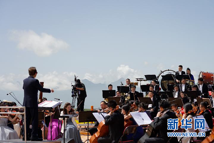 7月9日,交響樂團在指揮下演奏曲目。新華社記者陳杰 攝