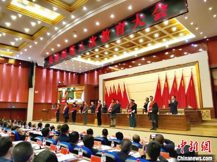 圖為青海省果洛州第八次教育大會現(xiàn)場。張?zhí)砀!z