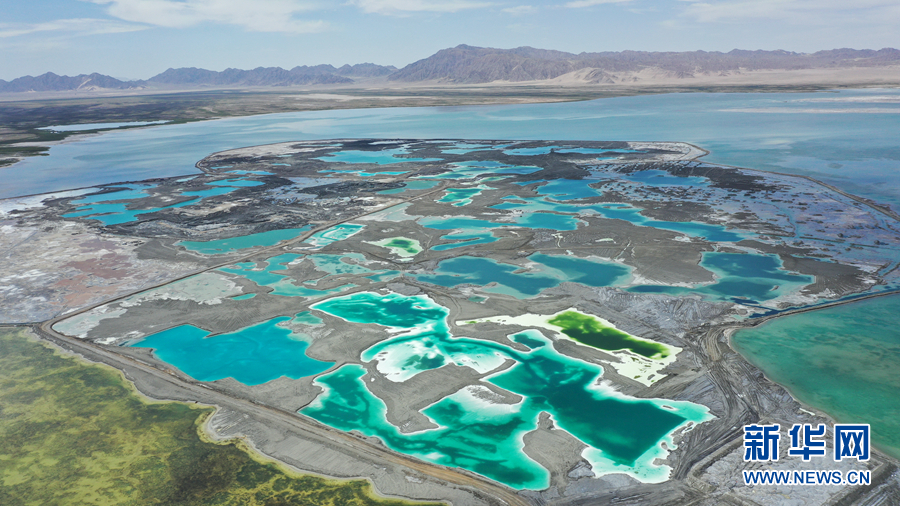 8月15日,航拍地處青海省海西州茫崖市的翡翠湖。翡翠湖是一個人工鹽湖,田字狀的湖水呈現(xiàn)出青翠的色彩。[詳細(xì)] -