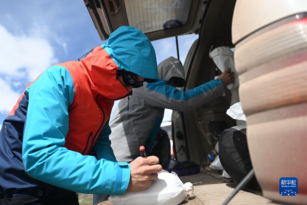 在長江源地區(qū),張典在給采集到的樣品編號。新華社記者 張龍攝