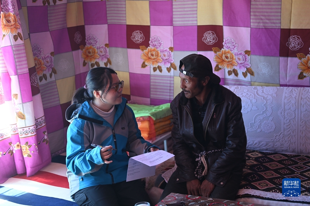 在唐古拉山鎮(zhèn),汪鈺婷在牧民家中進校訪談。新華社記者 張龍攝