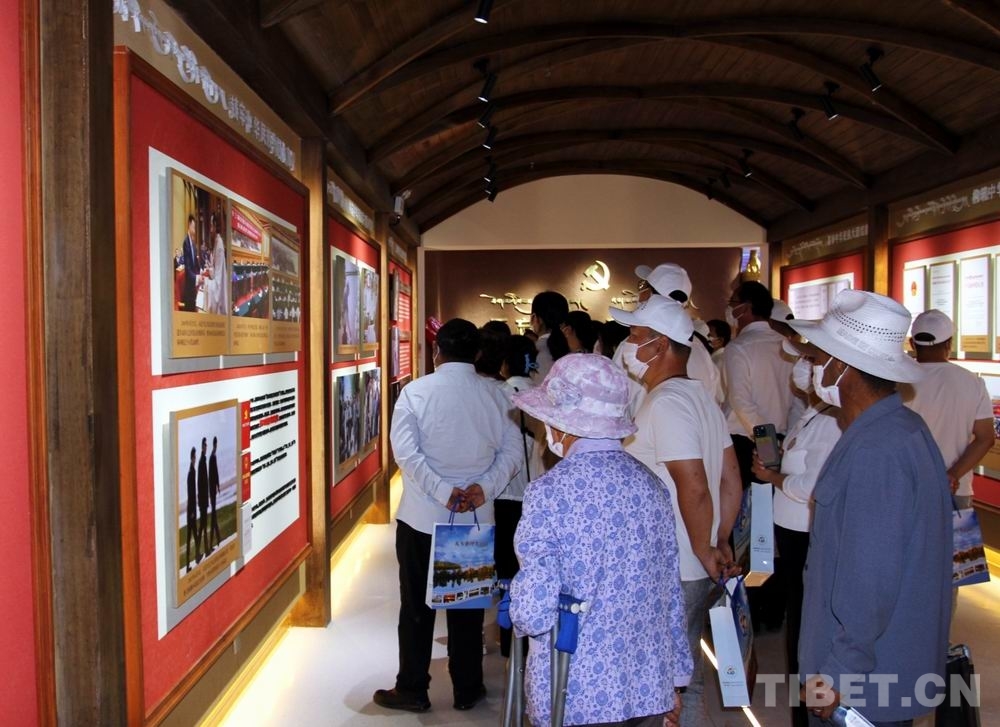 圖為7月27日,人們在當(dāng)日開館的貴德縣鑄牢中華民族共同體意識主題展館參觀