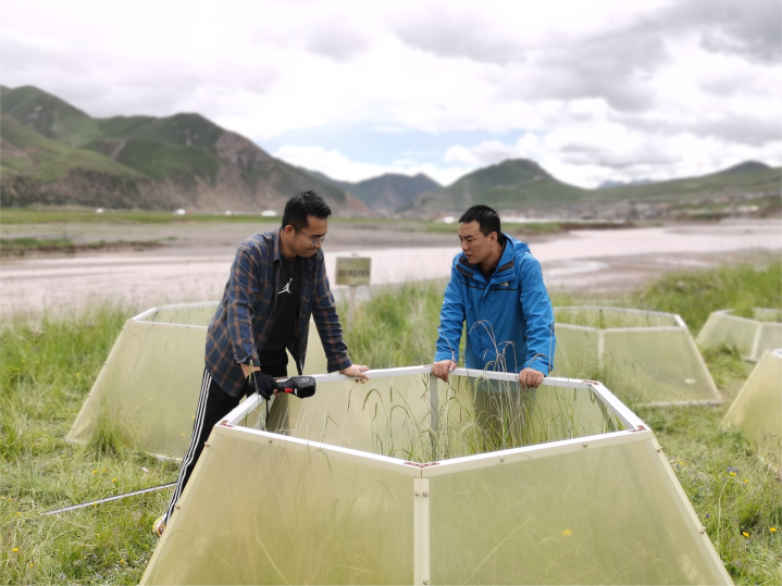 “模擬增溫試驗(yàn)”是國(guó)際上觀測(cè)不同增溫狀態(tài)下植物生態(tài)系統(tǒng)變化的主要研究方式。這項(xiàng)實(shí)驗(yàn)通過在草地上安裝不同高度的溫箱,布設(shè)傳感器觀測(cè)箱內(nèi)溫度,模擬形成不同增溫條件,從而分析以高原嵩草為優(yōu)勢(shì)種的高寒草甸植被對(duì)氣候變暖的響應(yīng)。