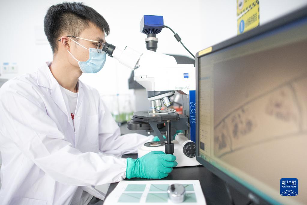 8月3日,在長(zhǎng)江科學(xué)院實(shí)驗(yàn)室,科研人員對(duì)長(zhǎng)江源區(qū)采集的藻類樣本進(jìn)行鑒定。 新華社記者 肖藝九 攝