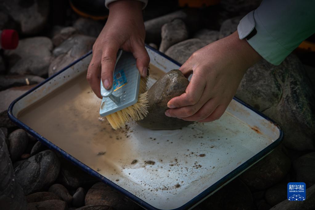 7月24日,長(zhǎng)江科學(xué)院科考隊(duì)員在采集底棲動(dòng)物樣本。 新華社記者 肖藝九 攝