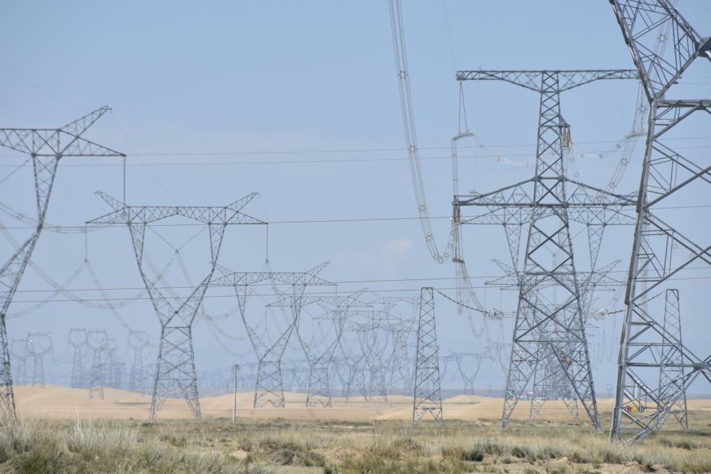 這是2021年9月1日拍攝的位于青海省海南藏族自治州共和縣的青豫直流工程輸電線路。新華社記者 解統(tǒng)強(qiáng) 攝