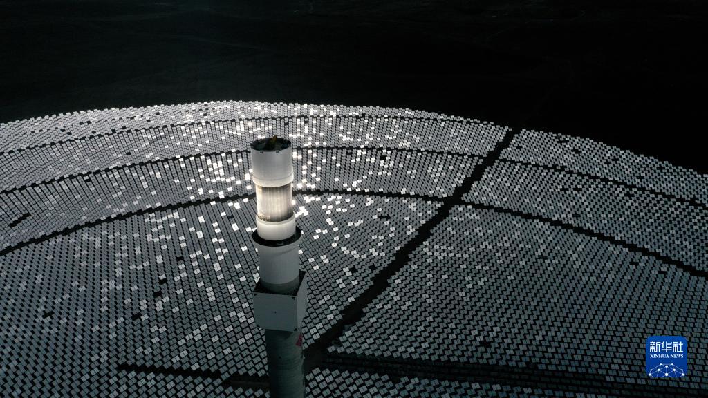 這是位于青海省海南藏族自治州共和縣光伏產(chǎn)業(yè)園內(nèi)一處塔式光熱發(fā)電項(xiàng)目(2021年3月3日攝,無(wú)人機(jī)照片)。新華社記者 張宏祥 攝