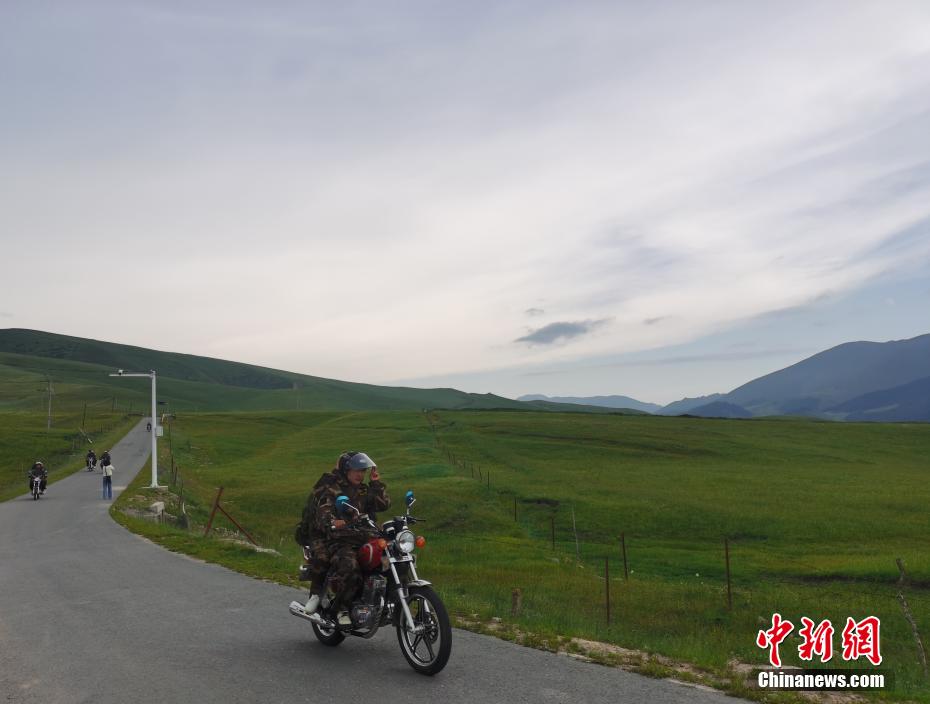 圖為生態(tài)管護(hù)員騎摩托車(chē)行進(jìn)。張?zhí)砀?攝