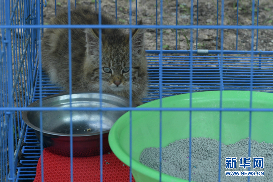 圖為祁連山國(guó)家公園青海片區(qū)野生動(dòng)物救護(hù)繁育中心內(nèi)救助的荒漠貓。新華網(wǎng) 卡婭梅朵 攝