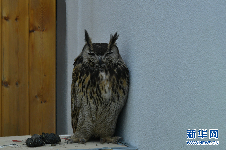 圖為祁連山國(guó)家公園青海片區(qū)野生動(dòng)物救護(hù)繁育中心內(nèi)救助的雕鸮。新華網(wǎng) 卡婭梅朵 攝