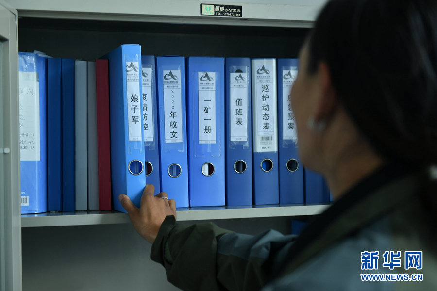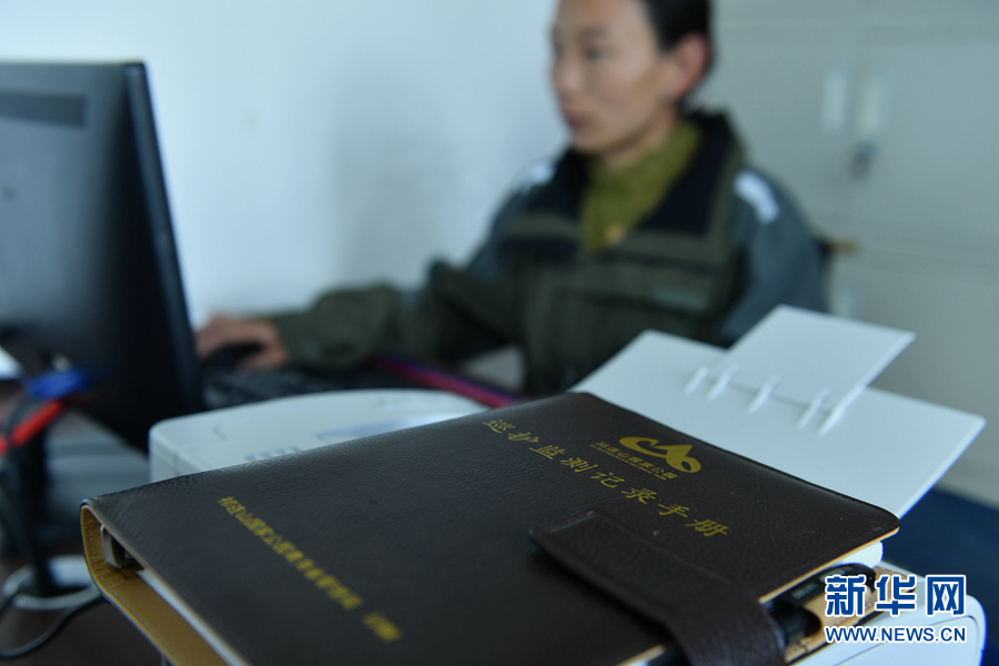 圖為代吉桑毛在管護(hù)站辦公室內(nèi)工作。新華網(wǎng) 卡婭梅朵 攝
