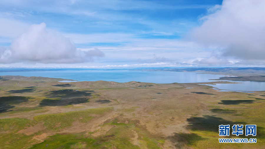 8月14日,初秋時節(jié)的冬格措納湖,湖水湛藍、天空遼闊,一幅大自然的美麗畫卷在這里展開。新華網(wǎng) 卡婭梅朵 攝