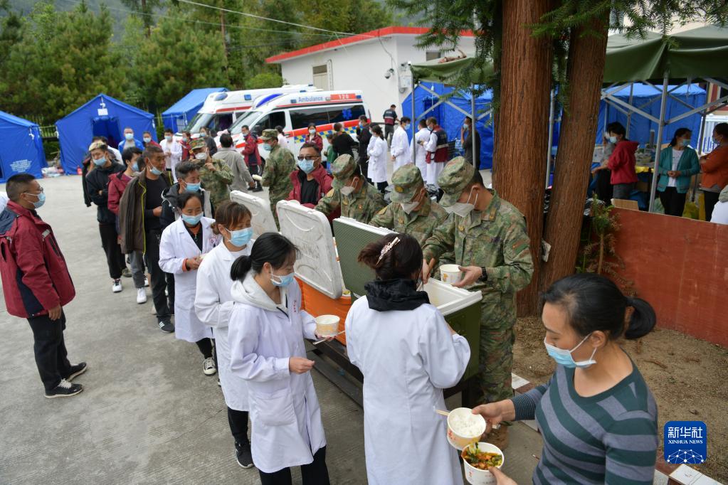 9月6日,西藏軍區(qū)川藏兵站部某大站救援隊抵達瀘定縣磨西鎮(zhèn),開設臨時熱食供應站為救援人員和受災群眾提供保障。新華社發(fā)(任云 攝)