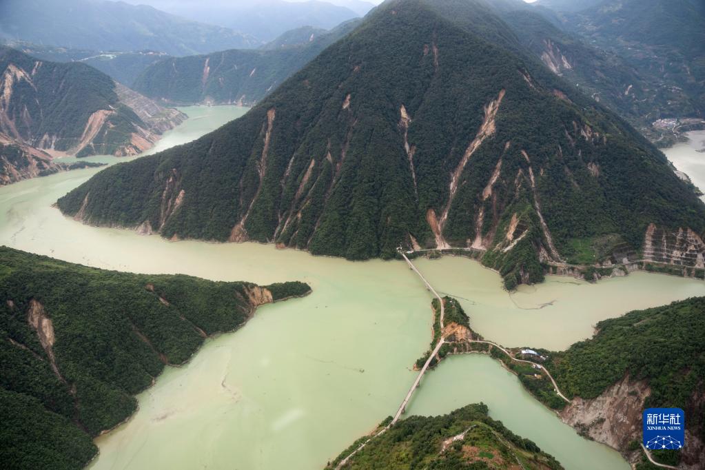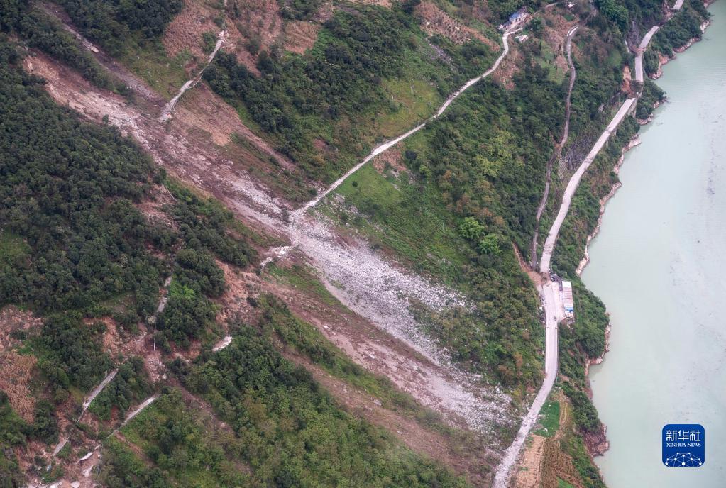 這是9月7日拍攝的雅安市石棉縣王崗坪彝族藏族鄉(xiāng)幸福村二組附近的照片,可看到山體多處滑坡(無人機照片)。新華社記者 才揚 攝