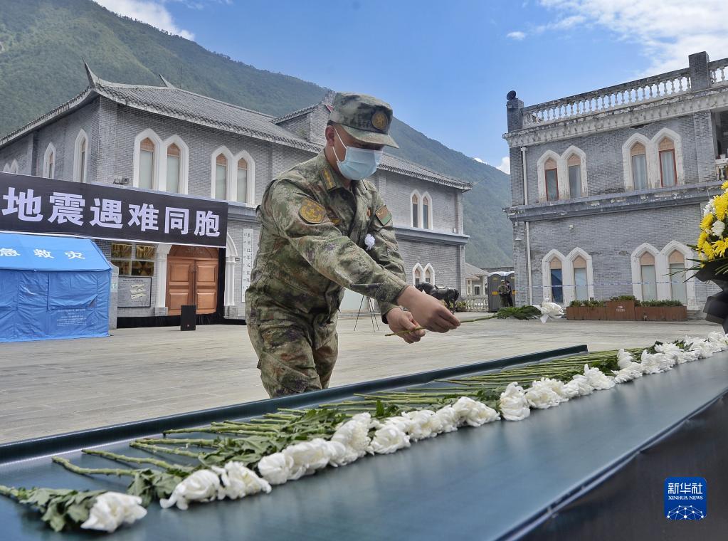 國務院抗震救災指揮部工作組成員,有關部隊負責同志,四川省委、省政府及省直有關部門負責人,在當地參與搶險救援的解放軍和武警官兵代表、公安民警、消防和應急救援隊伍、醫(yī)護人員、志愿者代表,基層干部群眾等參加哀悼活動。