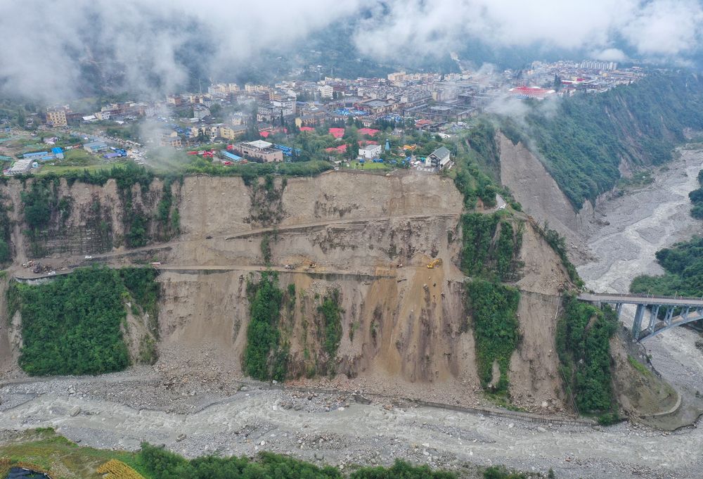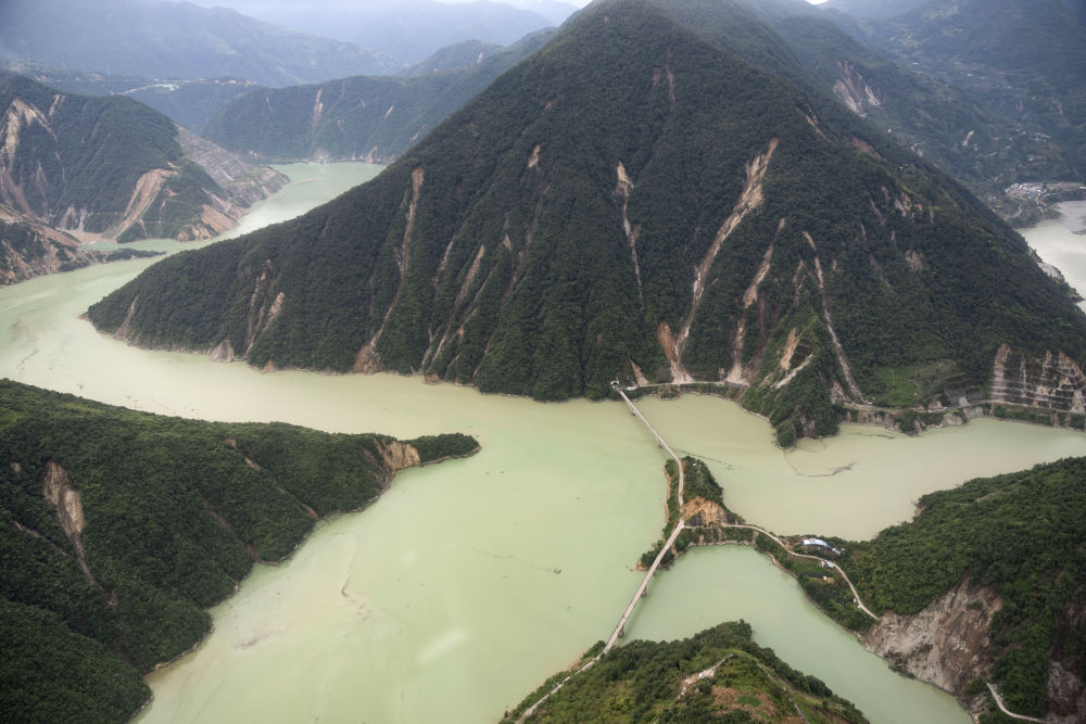 9月6日拍攝的得妥鎮(zhèn)附近的山谷,地震導(dǎo)致了山體垮塌。