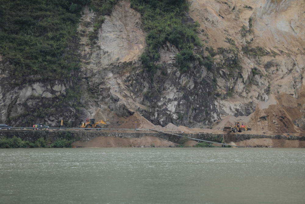 9月6日凌晨,通往得妥鎮(zhèn)的公路上,隨處可見震山體塌方后落下的碎石。