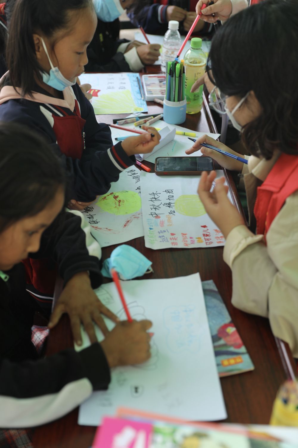 安置點(diǎn)內(nèi)的“青青兒童樂園”,在眾多的救災(zāi)帳篷中顯得格外突出。中秋節(jié)將至,在志愿者哥哥姐姐的幫助下,小朋友們開始為中秋節(jié)做準(zhǔn)備,他們用稚嫩卻真誠(chéng)的筆觸寫著祝福語,折著千紙鶴,為家鄉(xiāng)加油打氣。