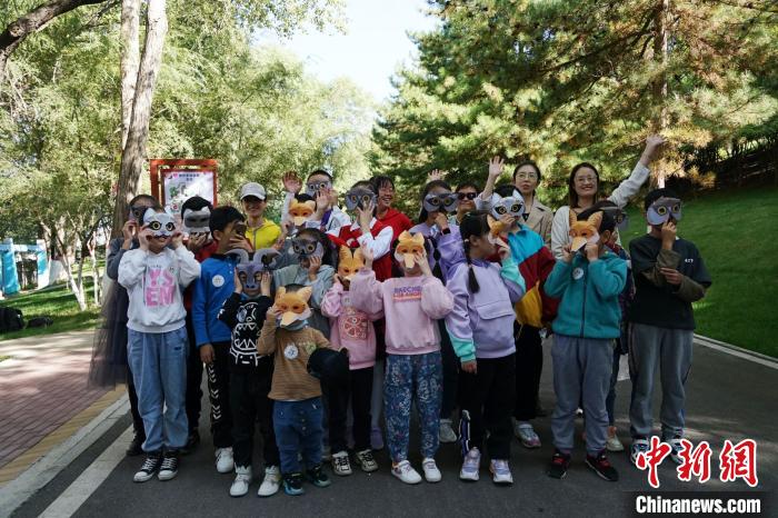 圖為青海野生動(dòng)物救護(hù)繁育中心副主任向?qū)W生介紹荒漠貓。馬銘言 攝