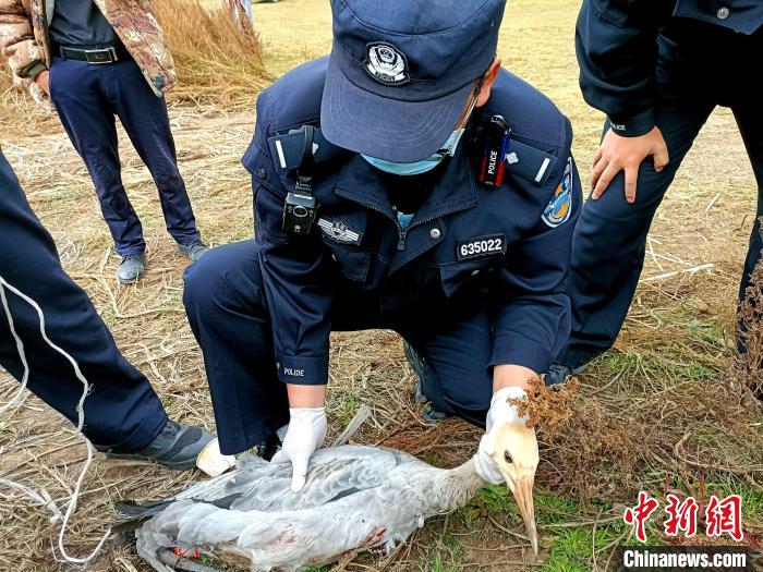 青海門源警方救助國家一級保護(hù)動(dòng)物黑頸鶴