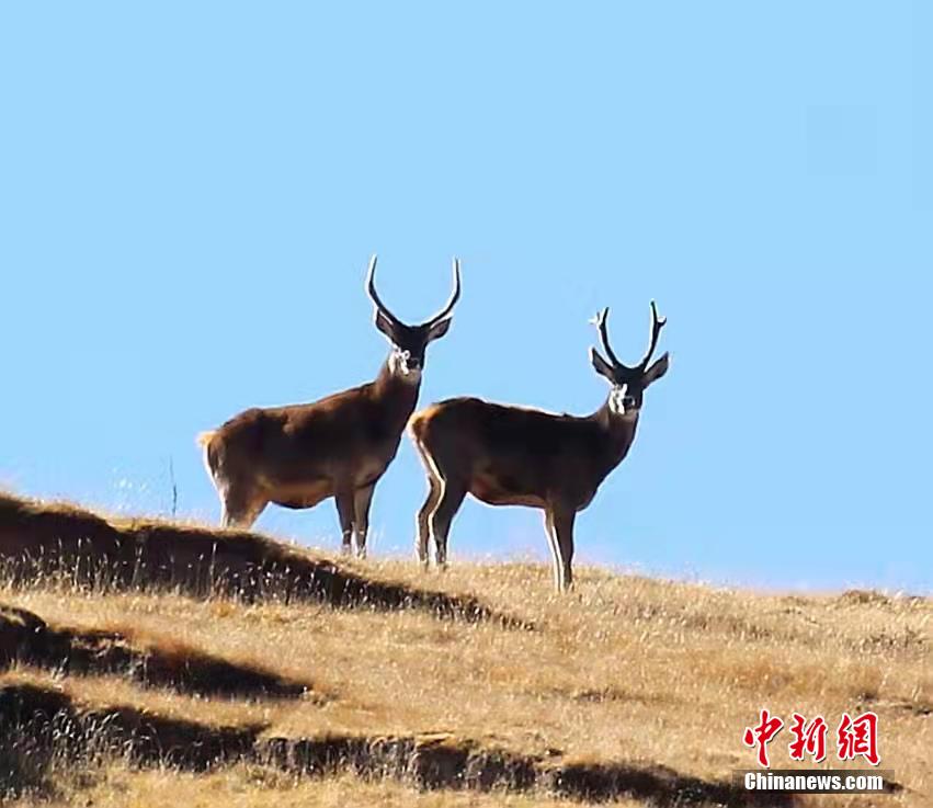 圖為兩頭白唇鹿在遠(yuǎn)眺。才讓扎西 攝