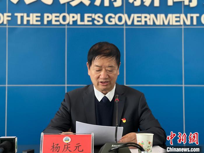 圖為青海湖景區(qū)保護(hù)利用管理局副局長(zhǎng)楊慶元在新聞發(fā)布會(huì)上作發(fā)布。李江寧 攝