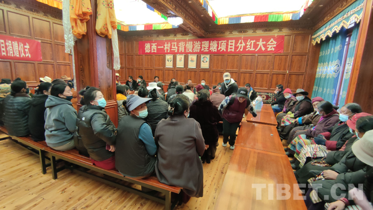 中國西藏網(wǎng)訊 11月10日,地處高寒的四川省甘孜州理塘縣一片冰天雪地。然而,在高城鎮(zhèn)德西一村活動中心,一場村民分紅大會卻熱火朝天進(jìn)行著。拿到現(xiàn)金分紅的村民四郎卓瑪,專門到“馬背慢游理塘”項(xiàng)目的石刻前留個影。