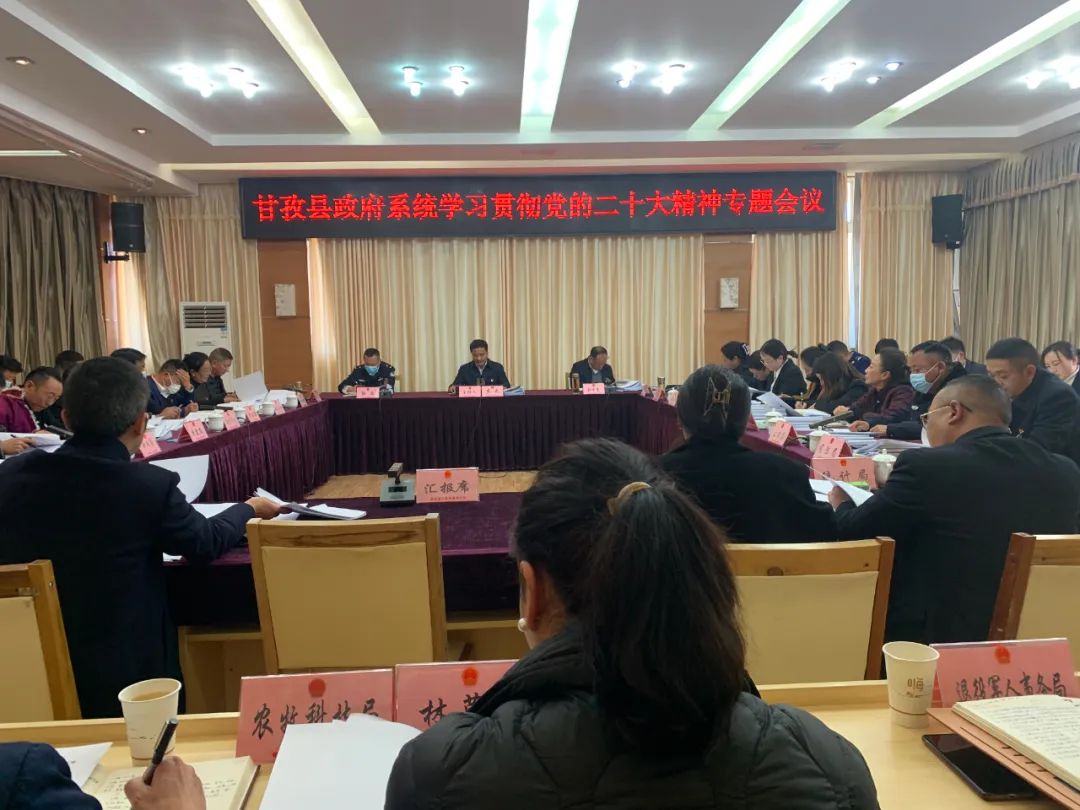 圖為甘孜縣政府系統(tǒng)學(xué)習(xí)貫徹黨的二十大精神專題會議 圖片來源:公眾號“微甘孜”