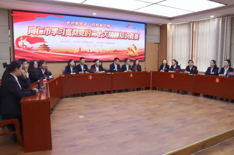 圖為青海省黃南州同仁市舉辦以“勇?lián)率姑⒑叫抡鞒獭睘橹黝}的黨的二十大精神知識競賽 圖片來源:今日同仁