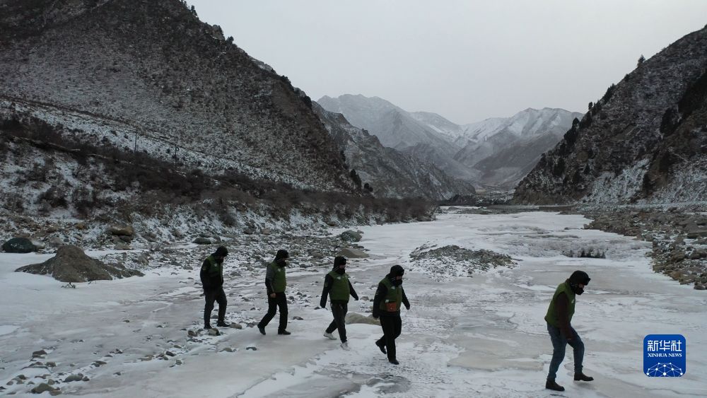 1月14日下午,管護(hù)員在野外巡山(無人機照片)。新華社記者 李占軼 攝