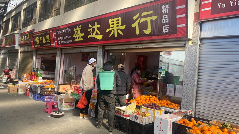 市場內,記者看到開張的攤位上擺著新鮮的蔬菜、水果、還有鮮肉等,其中生意最好的要數(shù)生鮮店。