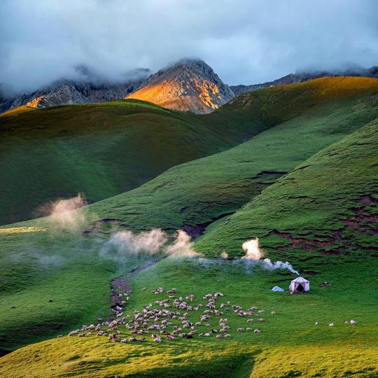 圖為焦生福作品《晨光炊煙》。青海省祁連山自然保護(hù)協(xié)會(huì)供圖