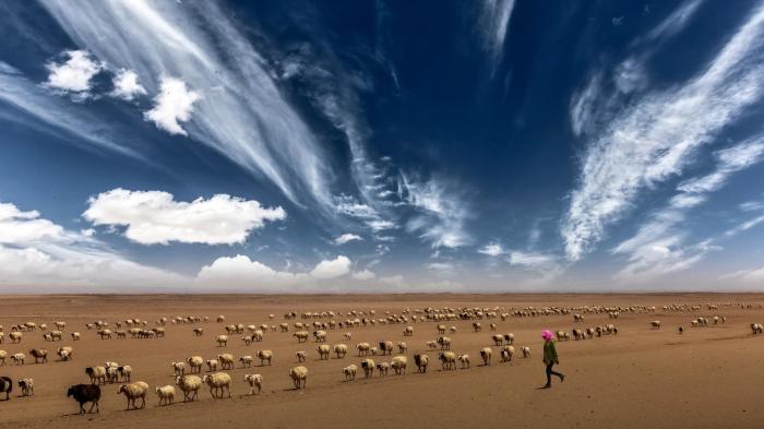 圖為焦生福作品《穿越沙漠的羊群》。青海省祁連山自然保護(hù)協(xié)會(huì)供圖