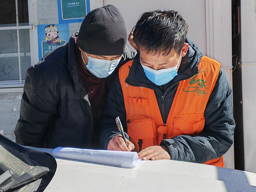 白瑪稱(chēng)來(lái)(右)對(duì)過(guò)往駕乘人員進(jìn)行認(rèn)真登記