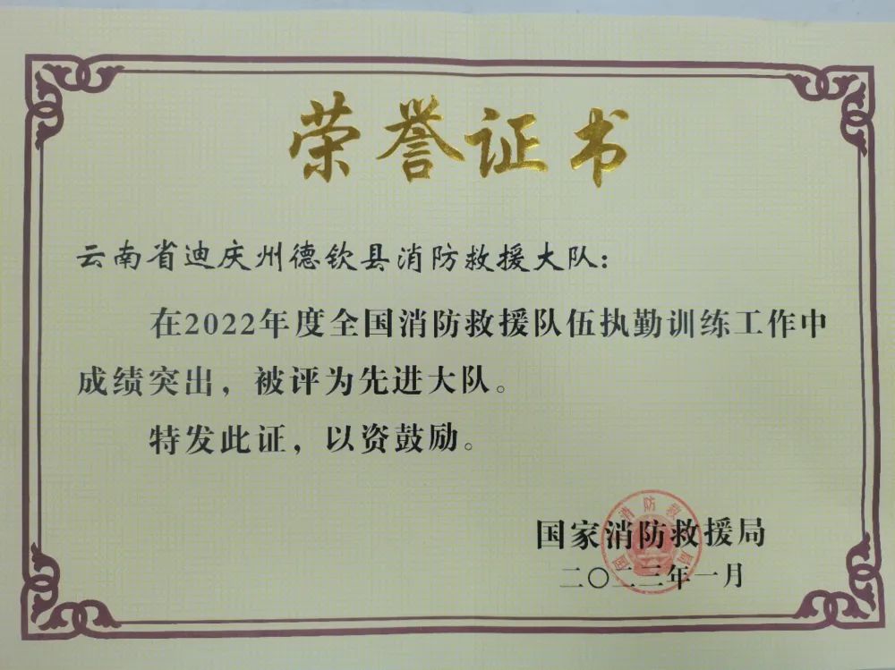 喜報:德欽縣消防救援大隊獲國家消防救援局表彰